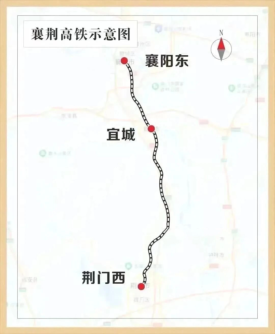 襄荆高铁开通后,宜城市结束不通高铁的历史,襄阳至宜城 13 分钟可达。襄阳至荆州最快 55 分钟可达,较动车组列车压缩 2 小时 27 分钟,荆门到襄阳不到 30 分钟,改变了沿线居民的出行版图。